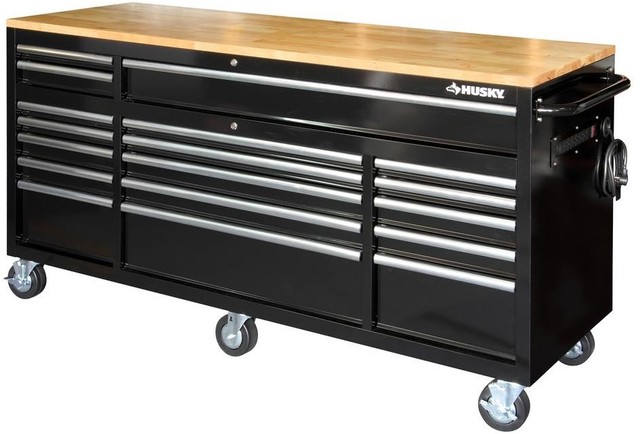 Husky 72 in. 18-Drawer Mobile Workbench with Solid Wood ...